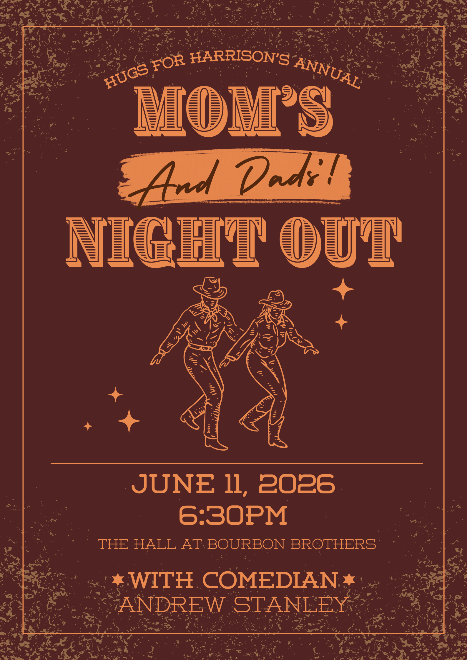 Join us for a boot-scootin’, belly-laughin’, stress-forgettin’ kind of night at The Hall at Bourbon Brothers on Thursday, June 11.
